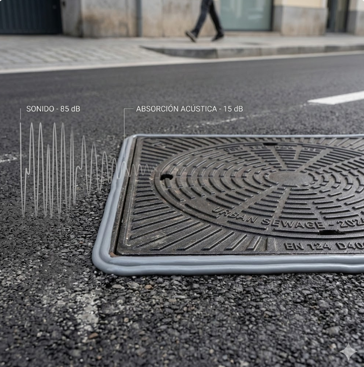 Descubre las mejores soluciones de reducción de ruido para tapas de alcantarilla. Guía técnica sobre resinas, normativa EN 124 y materiales para el silencio urbano.